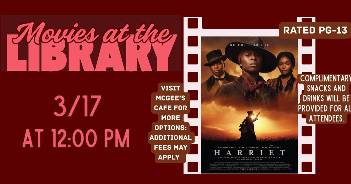 Join our Adult Services team on March 17th at 12pm for a screening of Harriet. Call (708) 862-6220 x248 to register.