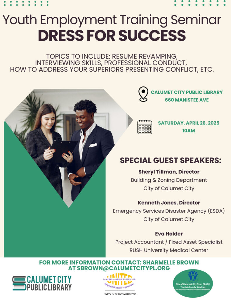 Please join us on Saturday April 26th at 10am for a youth employment seminar. We will cover resume revamping, interviewing skills, professional conduct and addressing superiors during conflict resolution and more.
