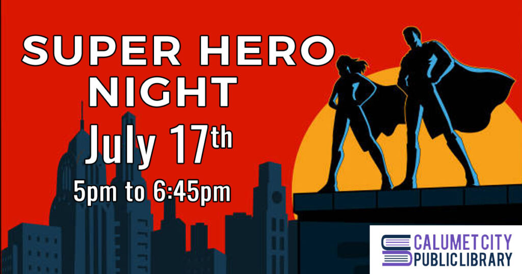 Superhero Night! June 26, 2025July 17, 2025 Staff Join our Youth Services team on July 17th for Superhero Night! Call (708) 862-6220 x254 to register. Written by Staff