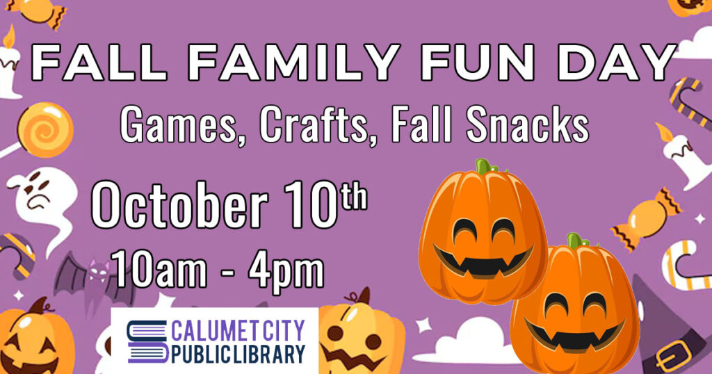 Join our Youth Services Department on Friday October 10th for Fall Family Fun Day! Call (708) 862-6220 x254 to register.