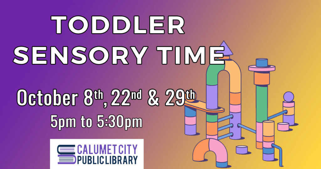 Join our Youth Services team for Toddler Sensory Time! Call (708) 862-6220 x254 to register.
