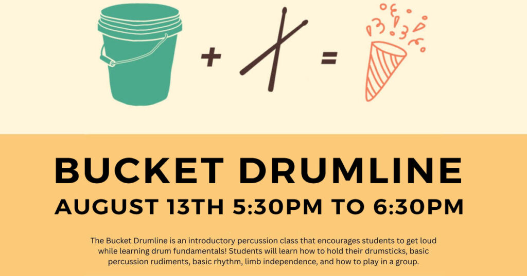 Join our Youth Services Department on August 13th at 5:30pm for our Bucket Drum Line! This is for young people aged 7 to 17. Call (708) 862-6220 x254 to register.