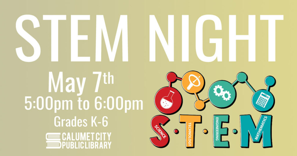Our Youth Services Department is hosting STEM night on May 7th for grades K-6. Call 708-862-6220 ext 254 to register.