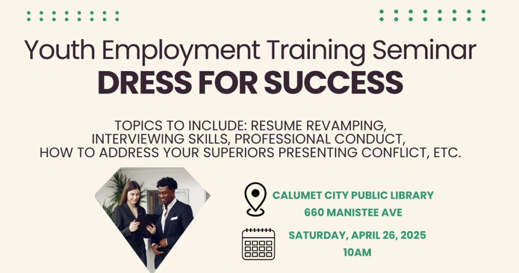 Please join us on Saturday April 26th at 10am for a youth employment seminar. We will cover resume revamping, interviewing skills, professional conduct and addressing superiors during conflict resolution and more.