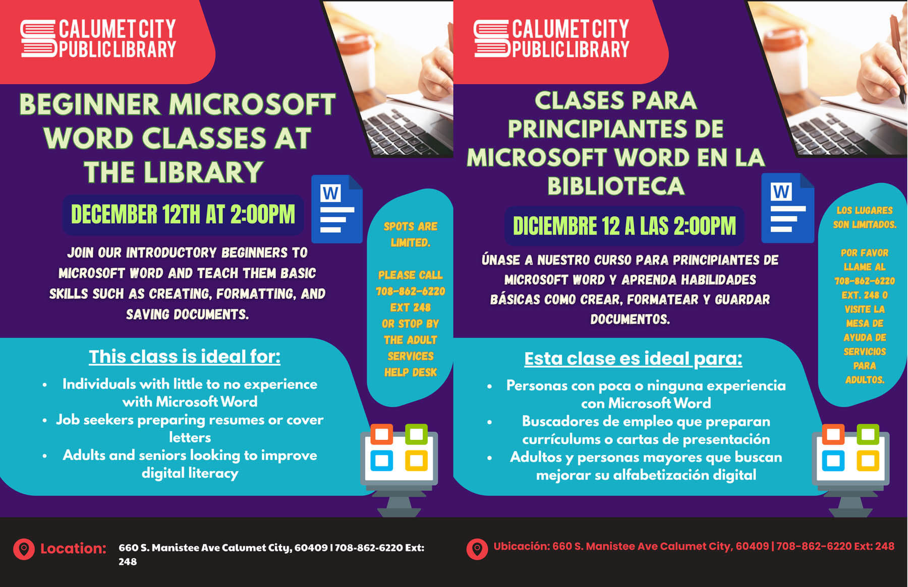 Call (708) 862-6220 x248 to register.