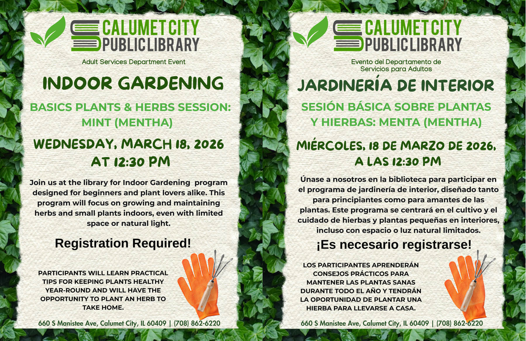 Call (708) 862-6220 x254 to register.