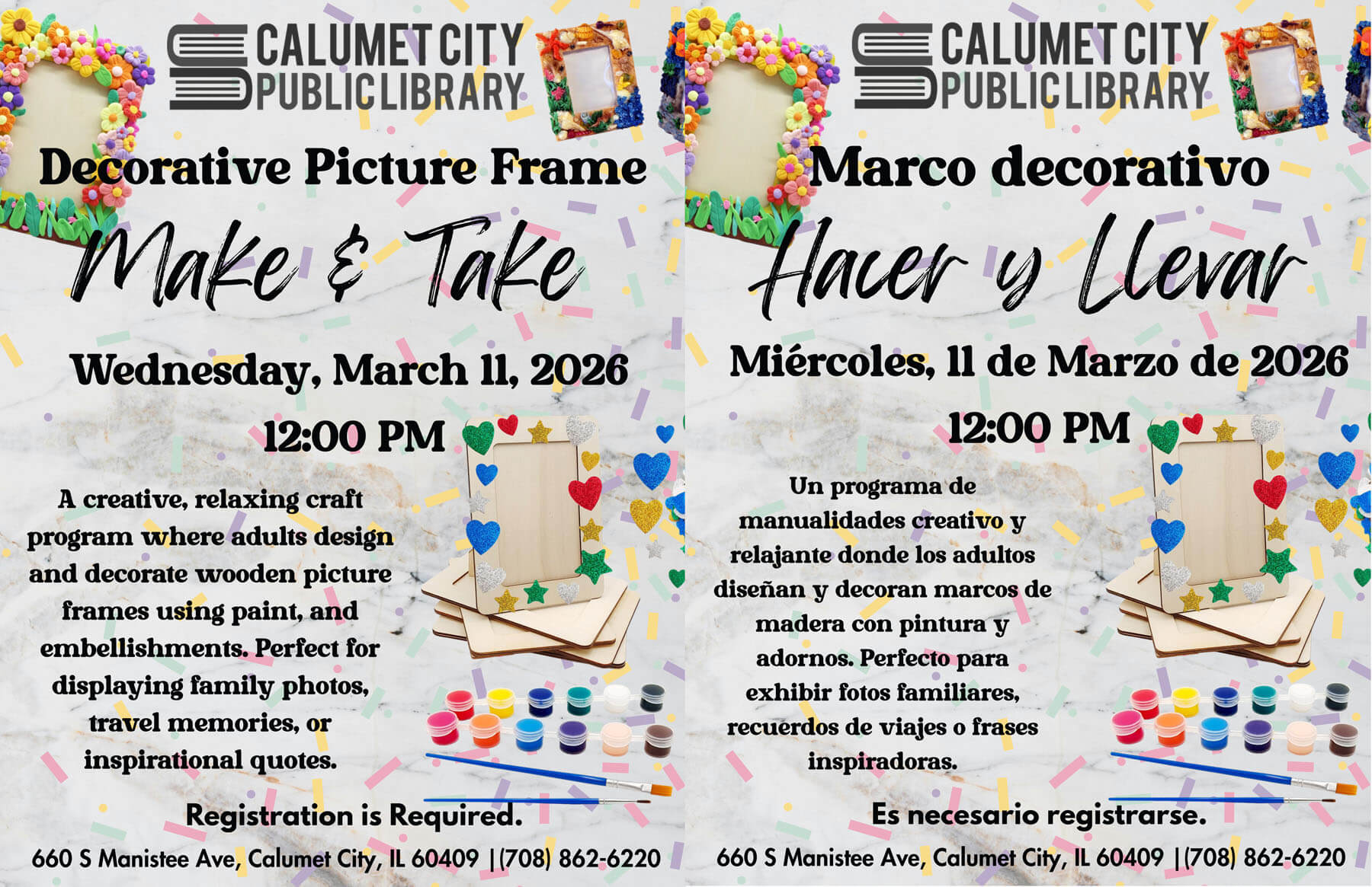 Calumet City Public Library 660 Manistee Ave., Calumet City, IL, United StatesCall (708) 862-6220 x248 to register.