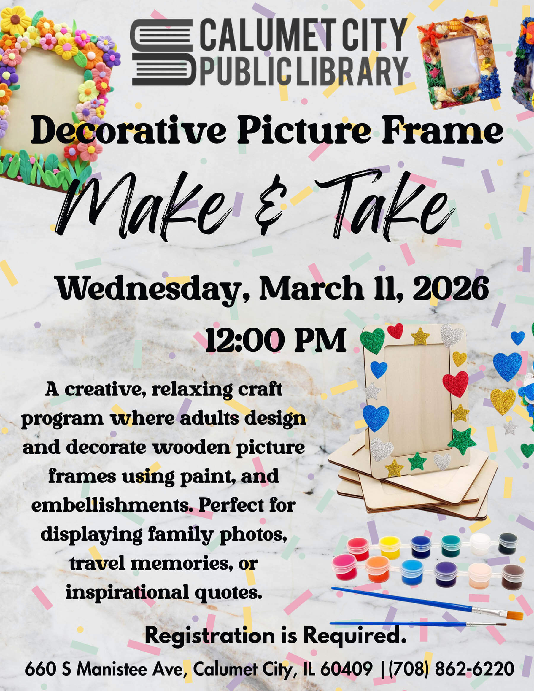 Calumet City Public Library 660 Manistee Ave., Calumet City, IL, United StatesCall (708) 862-6220 x248 to register.