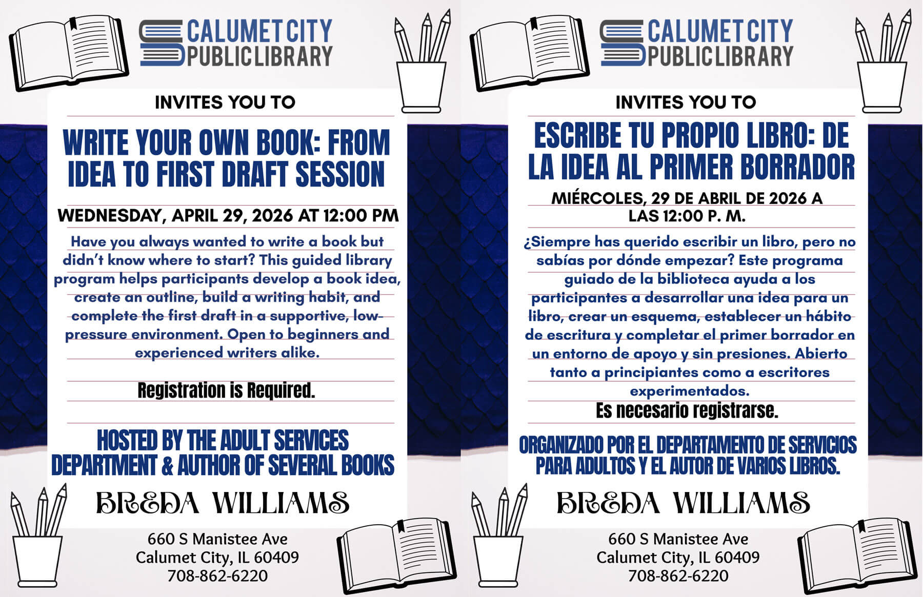 Calumet City Public Library 660 Manistee Ave., Calumet City, IL, United StatesCall (708) 862-6220 x248 to register.